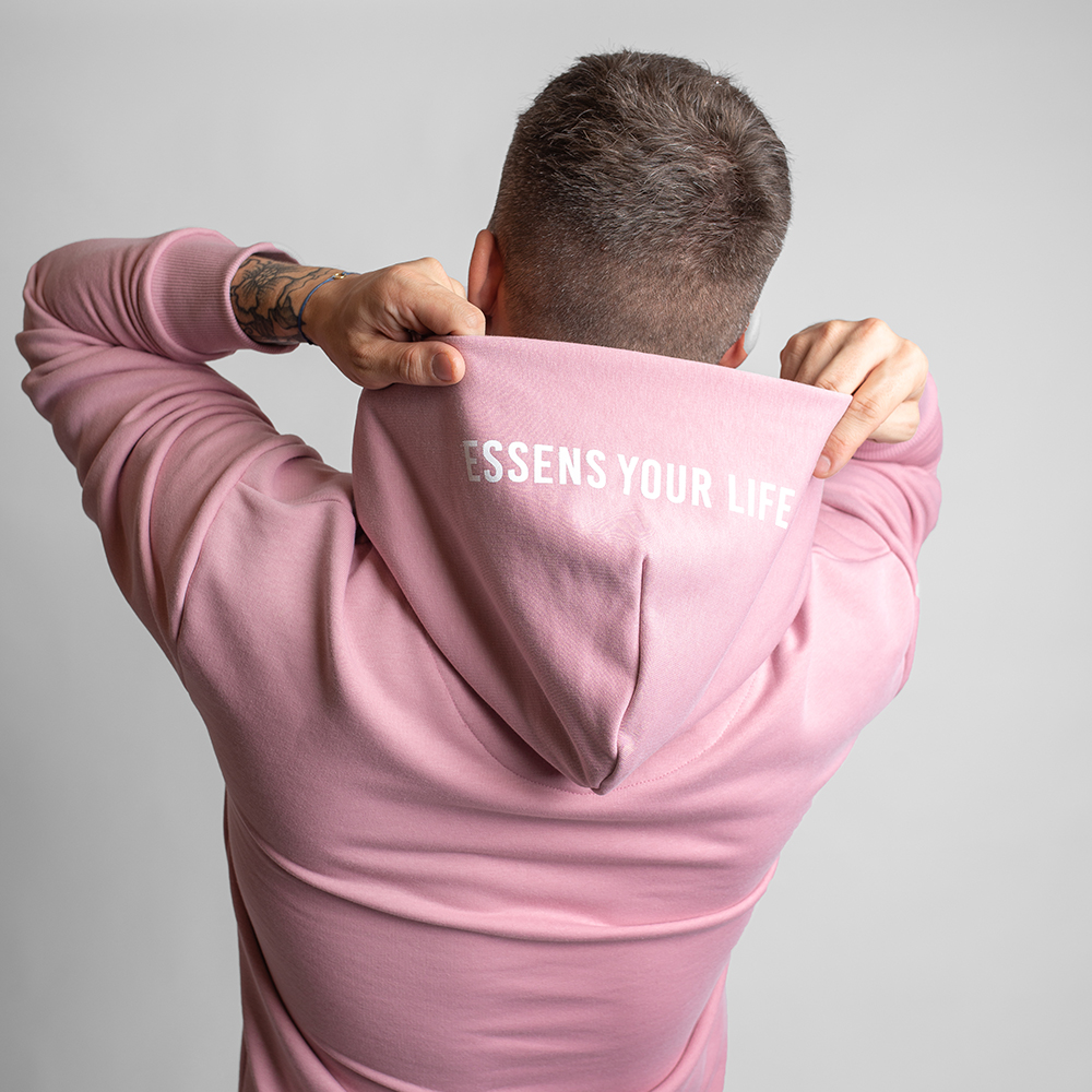 Unisex mikina s kapucňou s čiernou potlačou - ružová