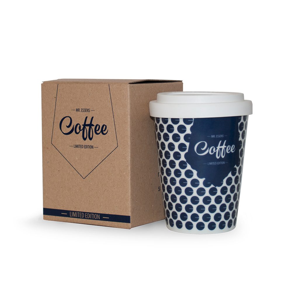 Hrnček Mr. ESSENSHrnček má objem 380 ml, je vyrobený z karlovarskej keramiky s modrou vypálenou potlačou a jeho súčasťou je odnímateľný kryt pre jednoduchú konzumáciu nápojov na cestách.