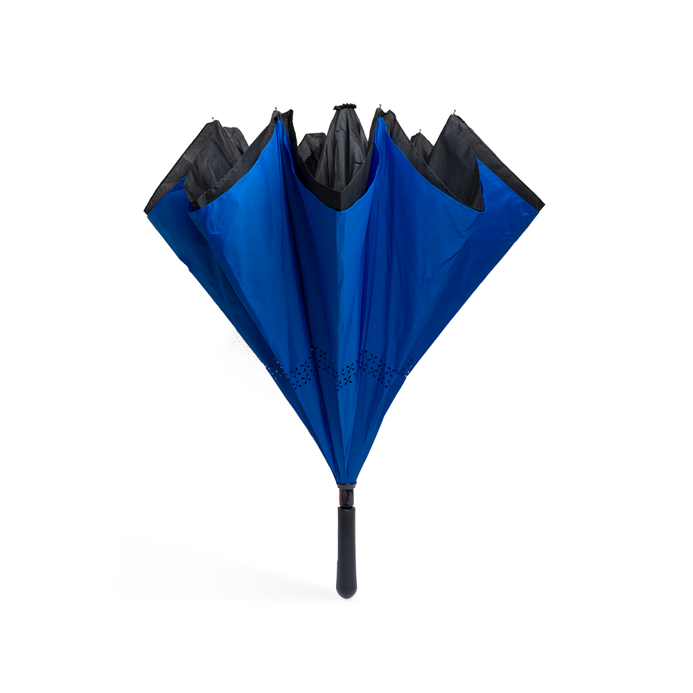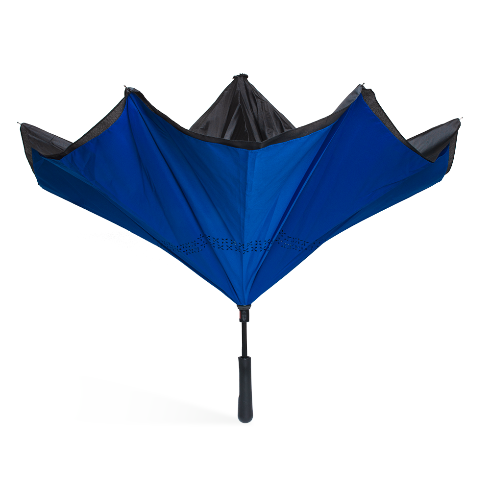 Zatvára sa obrátene, takže mokrá strana dáždnika zostáva vo vnútri.